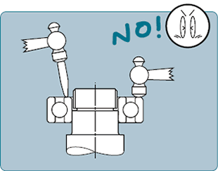 - Чтобы предотвратить образование зазоров между внутренним кольцом и заплечиком вала, нагретые и установленные на вал подшипники следует удерживать на месте до их полного остывания.