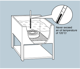 - Наиболее распространенным методом является погружение подшипника в нагретое масло. Используйте чистое масло и подвесьте подшипник в масле с помощью проволоки или подоприте его снизу металлическим экраном, чтобы избежать неравномерного нагрева элементов подшипника.